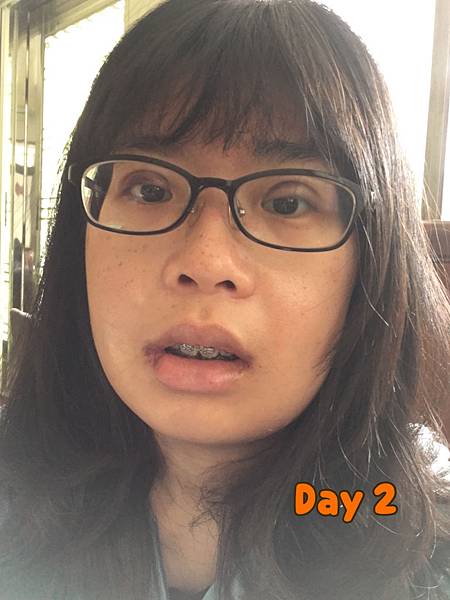 這篇主要是想分享一下我消腫的變化,因為看到其他人po的消腫的狀況真的都比我快很多、心裡多少會覺得很不安、很心急我一直到快滿一個月都還停留在別人十天左右的狀況、而且我好像滿容易水腫我的狀況是早上起床一定會復腫,大概到傍晚左右會覺得「哇賽、我今天有消腫欸」但隔天醒來就是全部重來 這種詐消腫的無限循環還滿令人崩潰的😱當然前幾天是滿可怕的腫!有圖慎入⋯ 第一天在凡登度過 手機鎖在置物櫃、也沒人幫我拍照留念 加上當天老爸開車來回台北屏東、一路上累死了 建議南部人還是搭高鐵比較舒服一點第二三天是最為腫脹、整個超級繃!第三天我拍了自己吃東西的照片 這個模樣還嚇到表姐的小孩哇哇叫😂